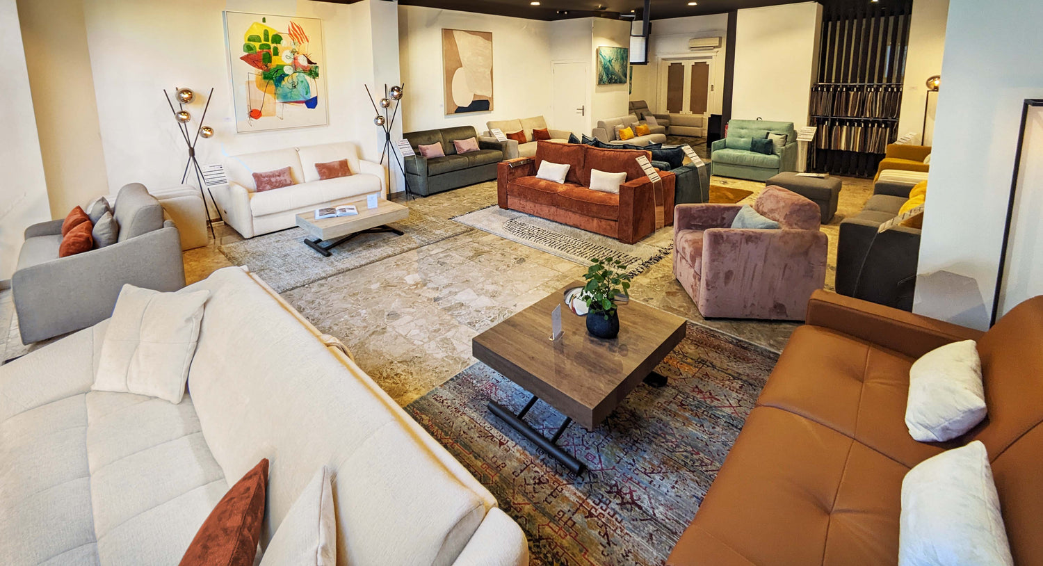In your Convertible Center Nice store, discover and test our models: sofa beds, designer convertible armchairs, mattresses for convertibles, poufs, and much more.