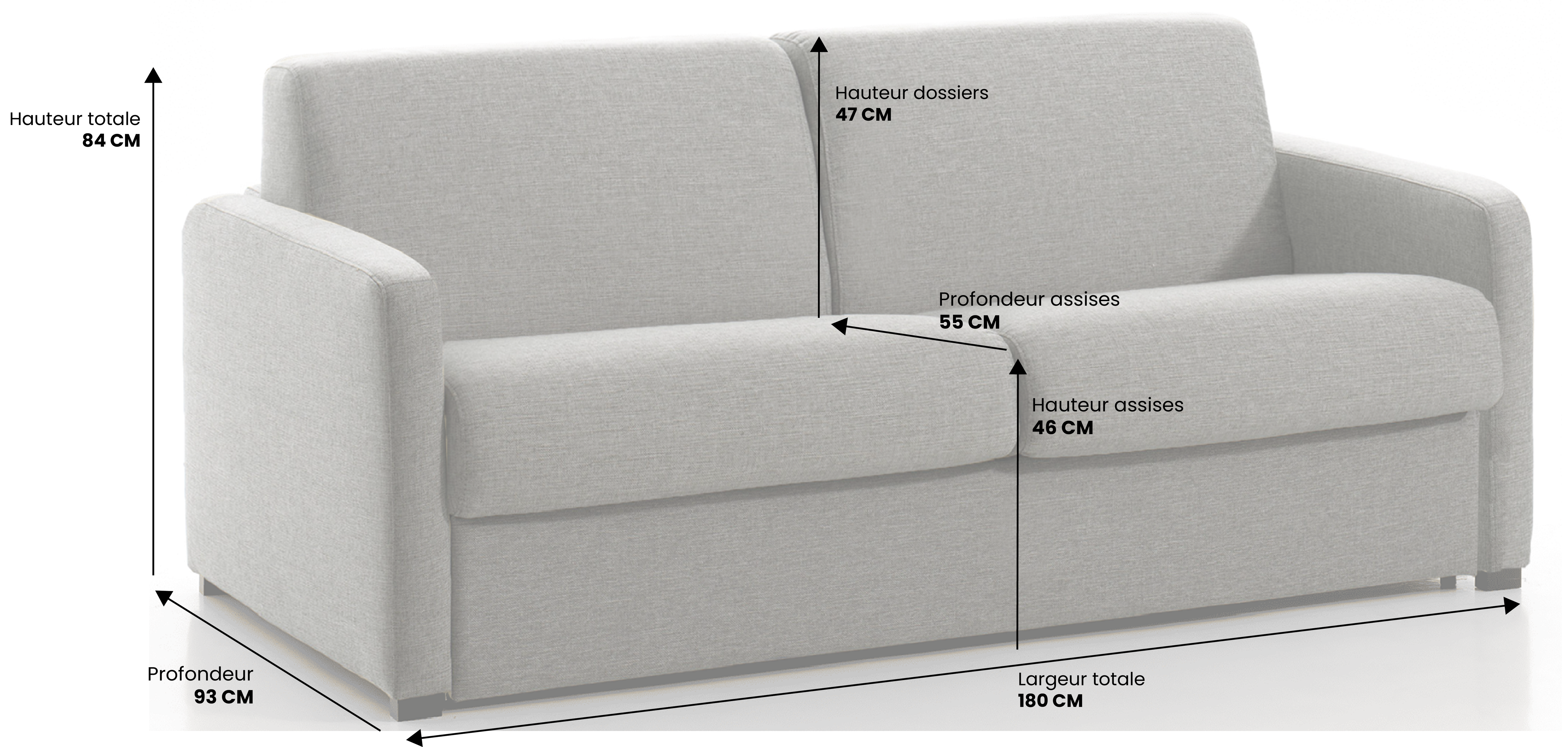 Our covers : Our fabrics combine flexibility (30% cotton) and strength (70% polyester) and are free from toxic products for the body and the environment, with a pleasant feel in all seasons. Mattress comfort: The thickness of our “Daily Sleeping” mattresses is 13 cm to 16 cm depending on the sofa model. The HR (High Resilience) foams that fill them are available in 3 densities: 35Kg/m3, 40Kg/m3 or 55Kg/m3.