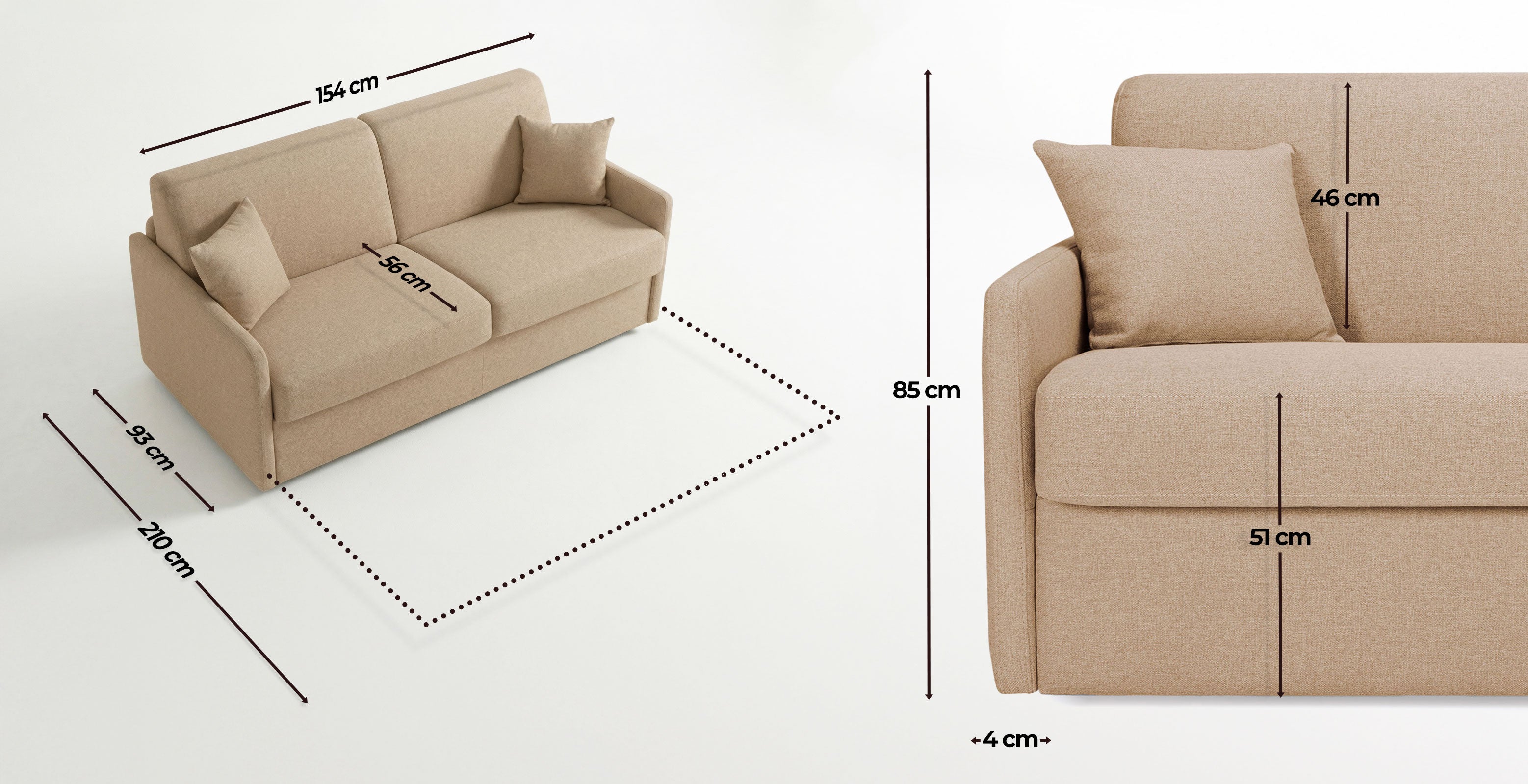 Functional and practical, the DEAUVILLE 2-seater sofa bed will optimize your interior space. Its 4 cm thick armrests offer an excellent compromise between space saving and comfort.