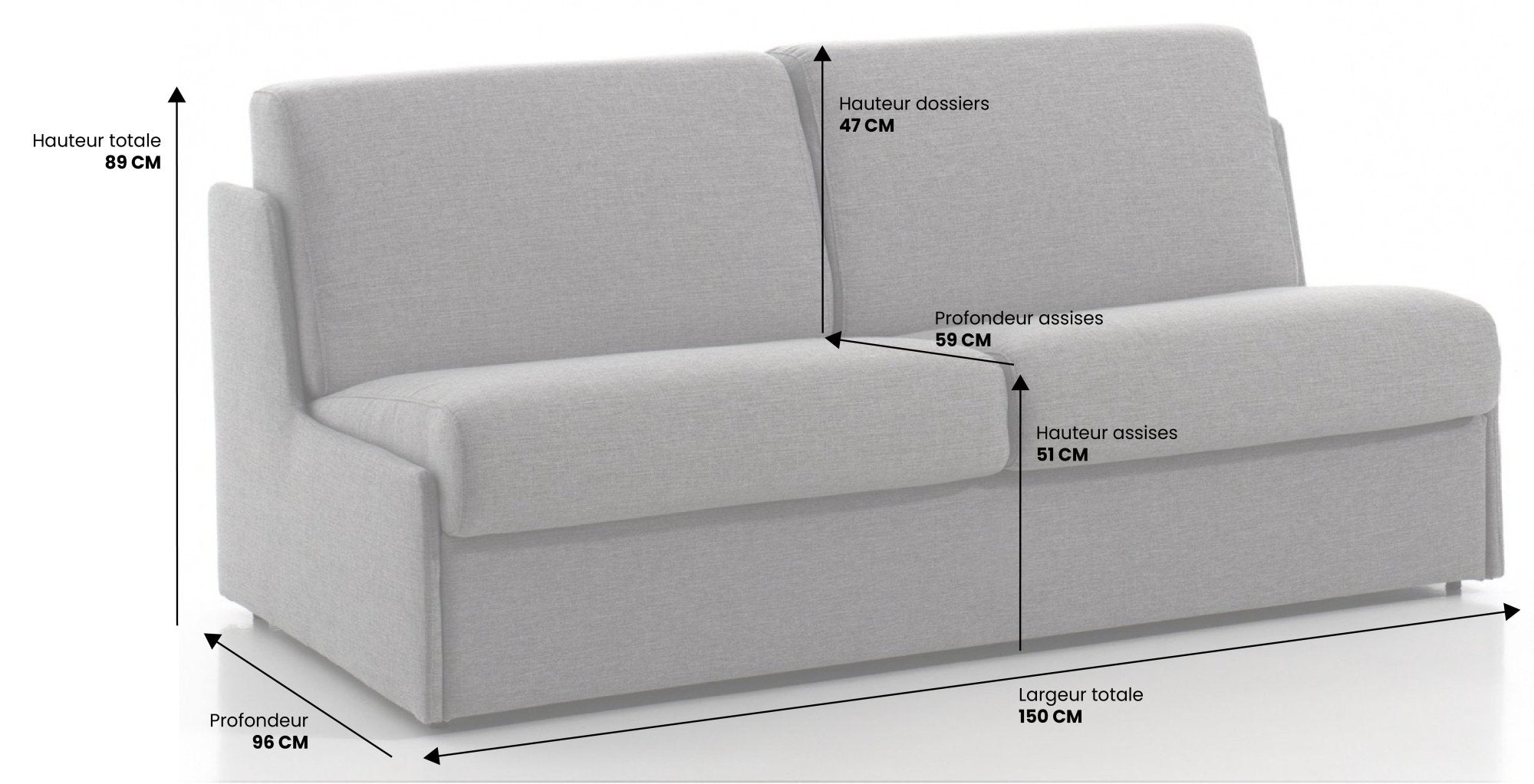 Our covers : Our fabrics combine flexibility (30% cotton) and strength (70% polyester) and are free from toxic products for the body and the environment, with a pleasant feel in all seasons. Mattress comfort: The thickness of our “Daily Sleeping” mattresses is 13 cm to 16 cm depending on the sofa model. The HR (High Resilience) foams that fill them are available in 3 densities: 35Kg/m3, 40Kg/m3 or 55Kg/m3.