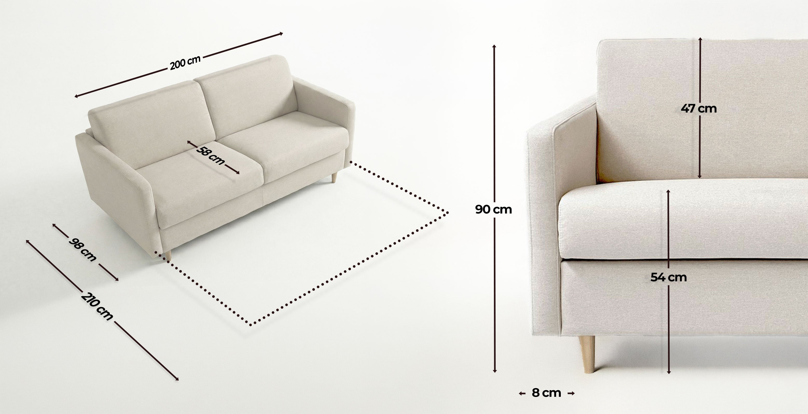 Functional and practical, the CANNES 4-seater convertible sofa will optimize your interior space with its small space-saving armrests. Its 8 cm thick armrests will offer you comfortable support for your arms and make it an excellent compromise between space saving and comfort. Its wooden feet make it a chic and high-end product .