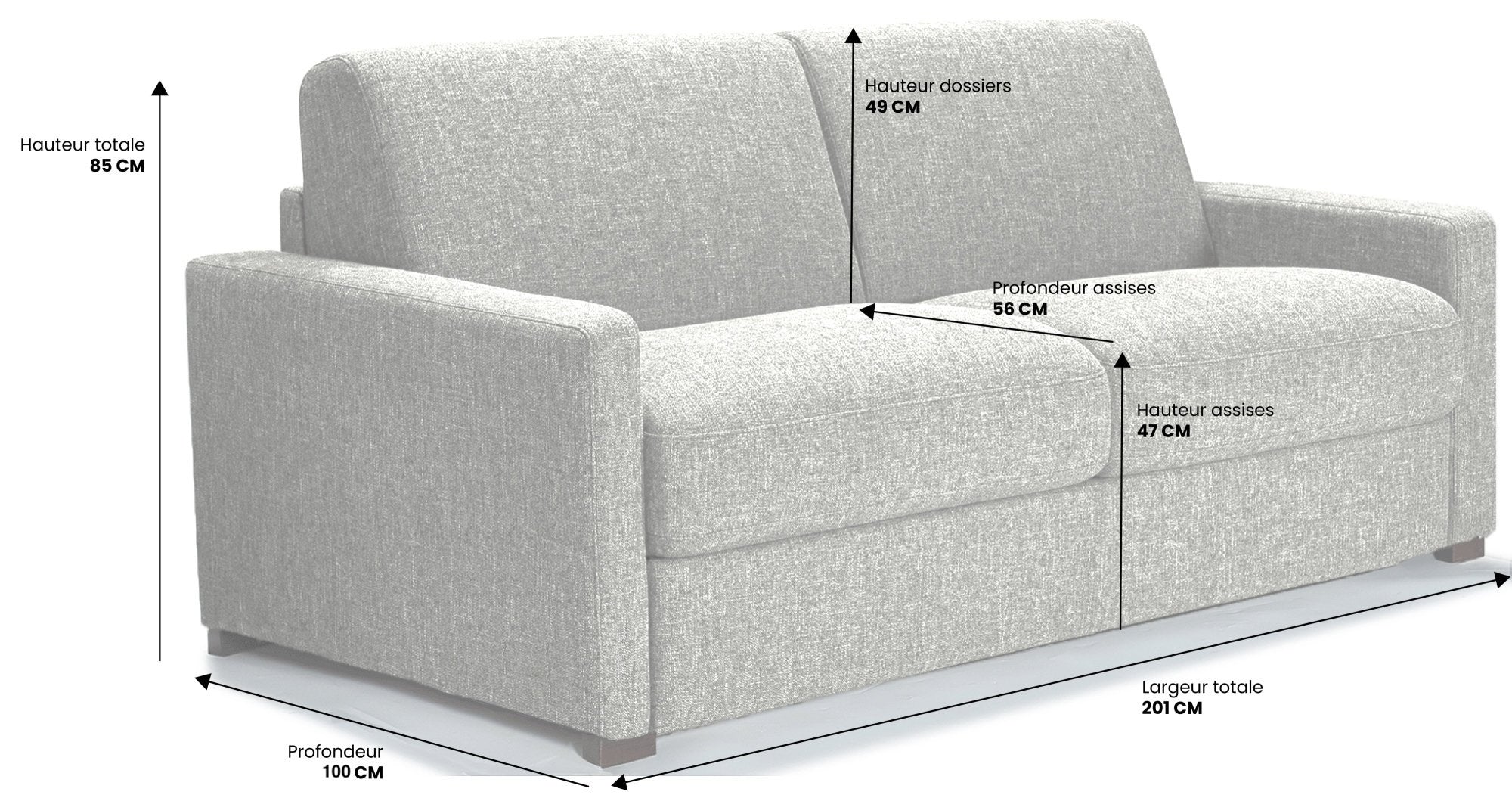 Our covers : Our fabrics combine flexibility (30% cotton) and strength (70% polyester) and are free from toxic products for the body and the environment, with a pleasant feel in all seasons. Mattress comfort: The thickness of our “Daily Sleeping” mattresses is 13 cm to 16 cm depending on the sofa model. The HR (High Resilience) foams that fill them are available in 3 densities: 35Kg/m3, 40Kg/m3 or 55Kg/m3.