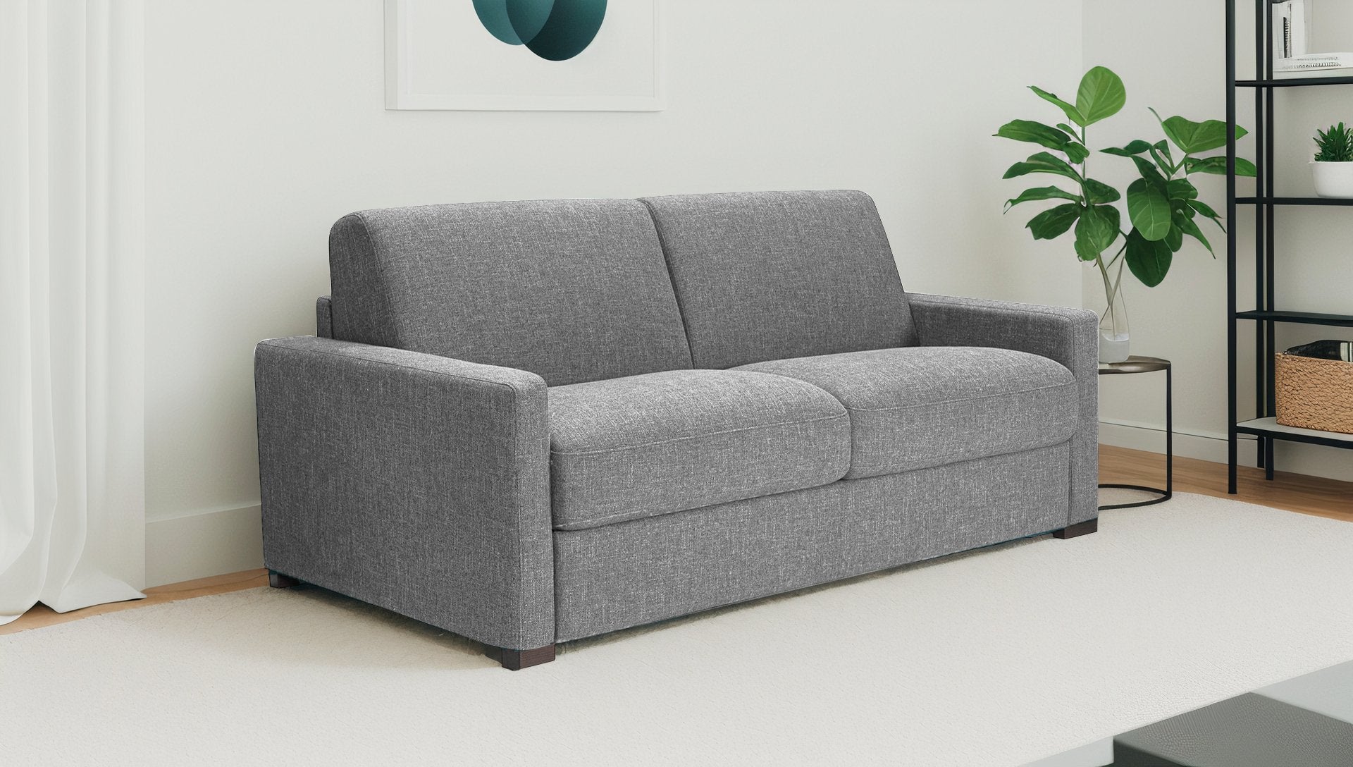 You will spend long, sweet nights there, just like in a real bed, thanks to its RAPIDO opening mechanism equipped with a wide double slatted base and a 16cm mattress for very comfortable sleeping. It will transform into a sofa bed with a single movement and with ease.