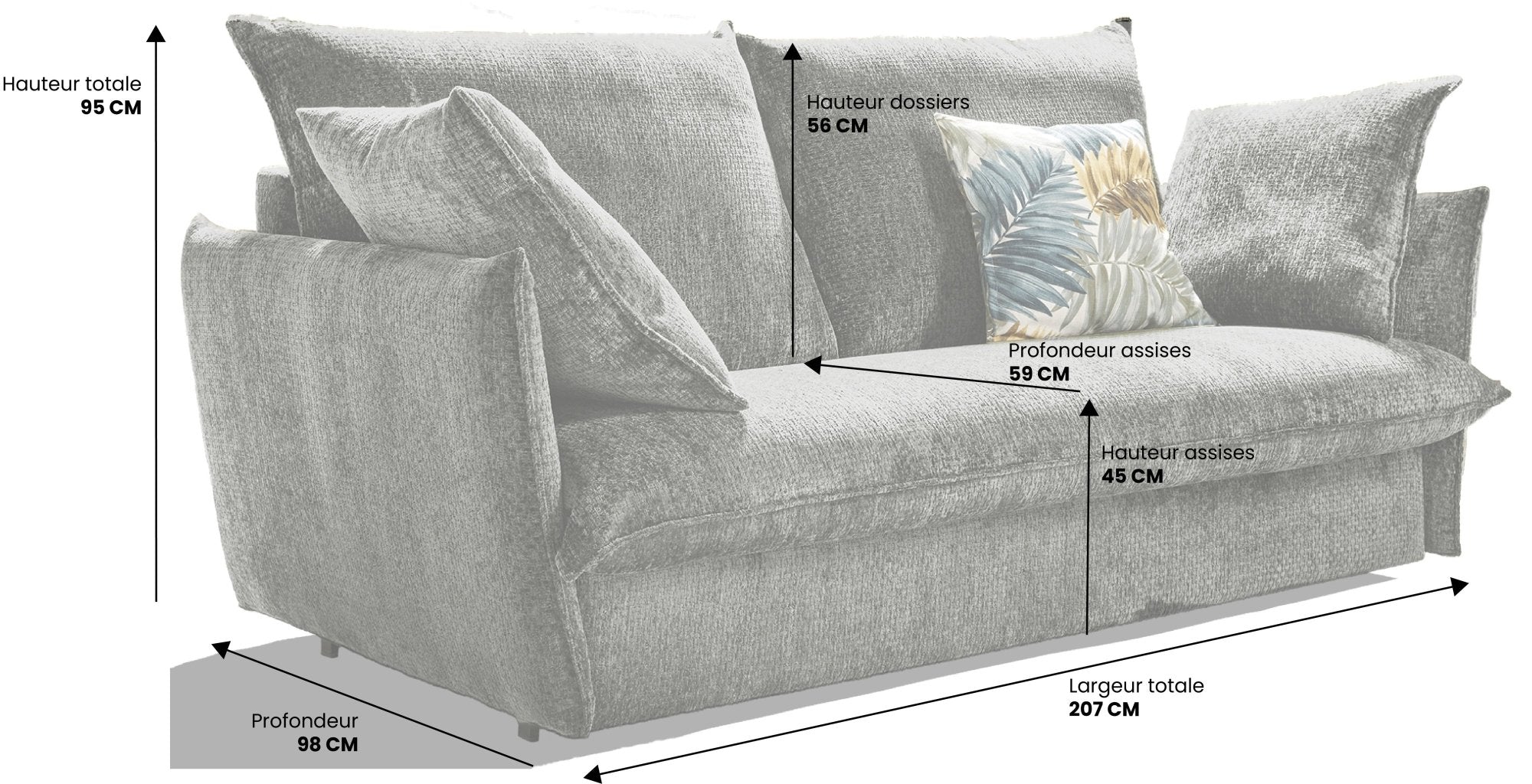 To transform it into a comfortable bed, you won't need to remove its cushions. Its EXPRESS opening mechanism has been designed to make your life easier and last over time. In a few seconds, your sofa that no one suspects is a convertible transforms into a real 160cm bed.