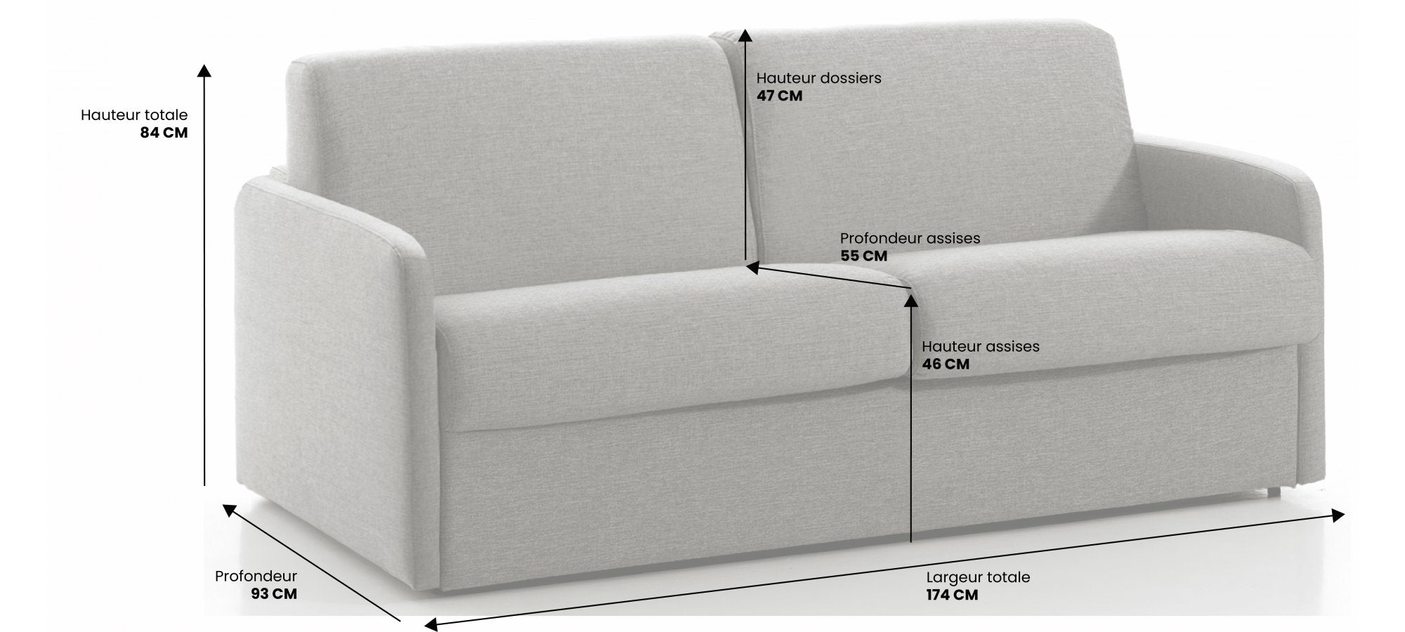 Our covers : Our fabrics combine flexibility (30% cotton) and strength (70% polyester) and are free from toxic products for the body and the environment, with a pleasant feel in all seasons. Mattress comfort: The thickness of our “Daily Sleeping” mattresses is 13 cm to 16 cm depending on the sofa model. The HR (High Resilience) foams that fill them are available in 3 densities: 35Kg/m3, 40Kg/m3 or 55Kg/m3.