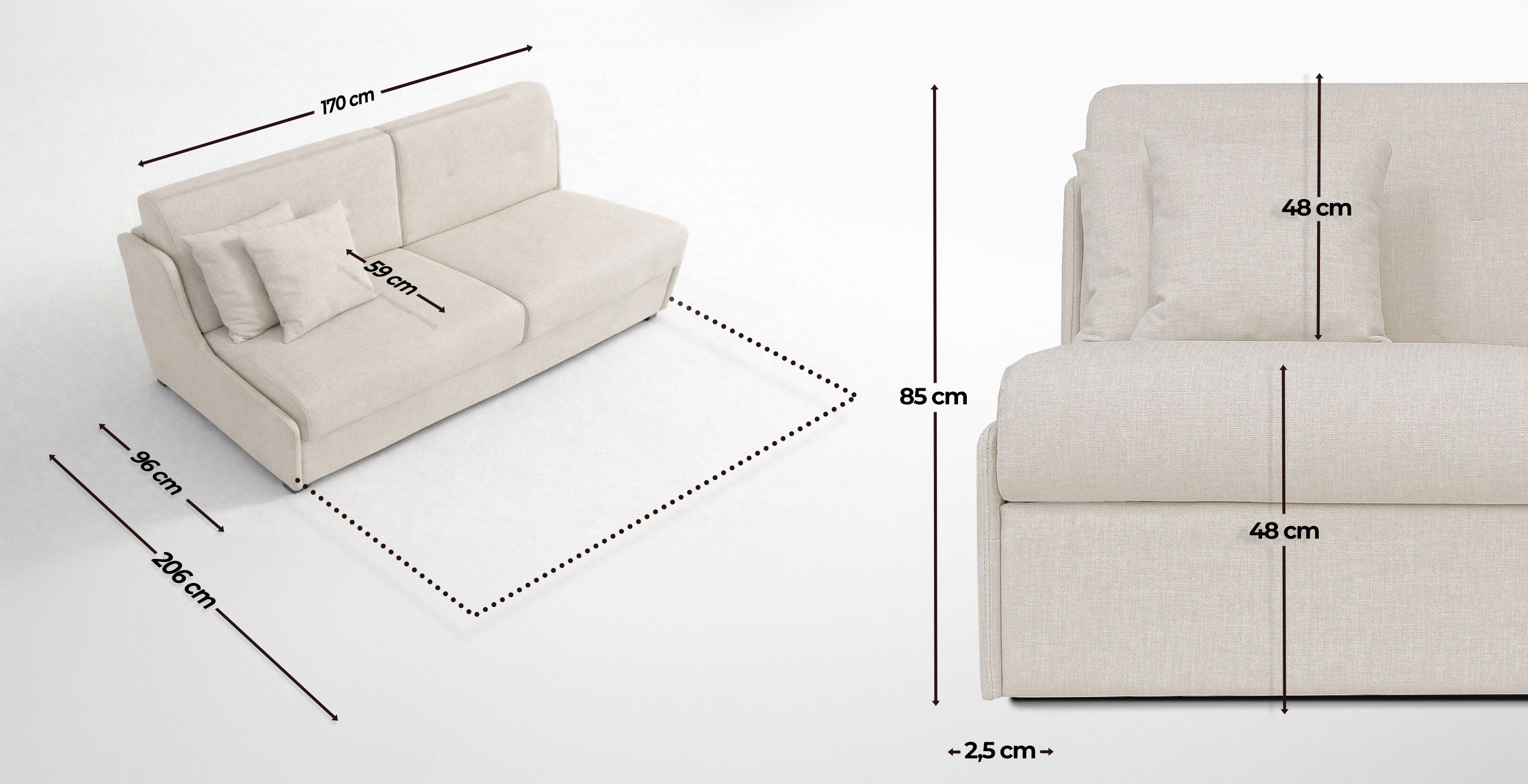 This is an ideal convertible bed for small spaces, studios & bedrooms! With its 140cm bed, the width of this sofa is only 170cm!