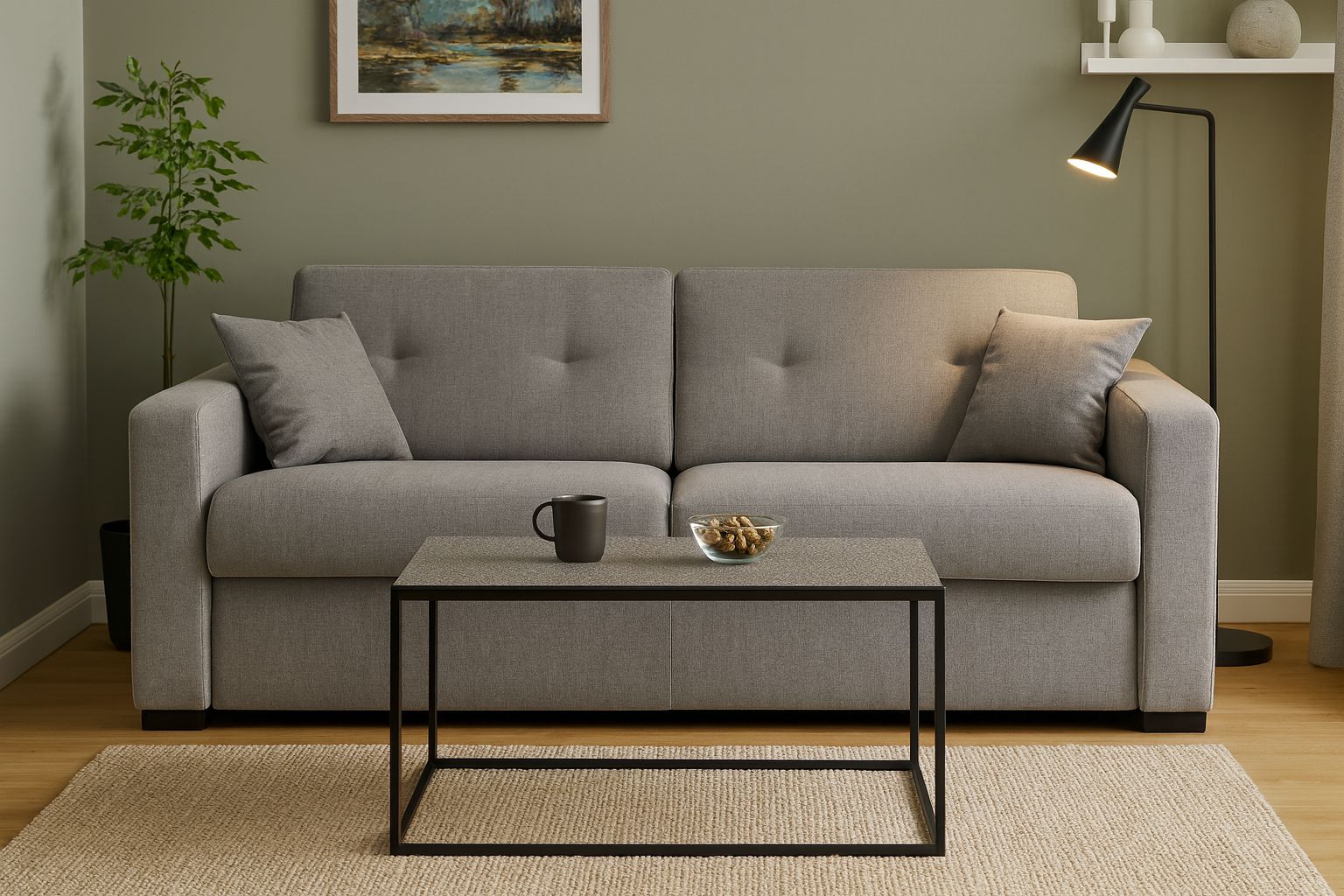 Thanks to its compact dimensions and modern style, the LYON sofa bed fits easily into a small living room , a studio , an apartment , or a guest room . It is the ultimate space-saving convertible sofa .