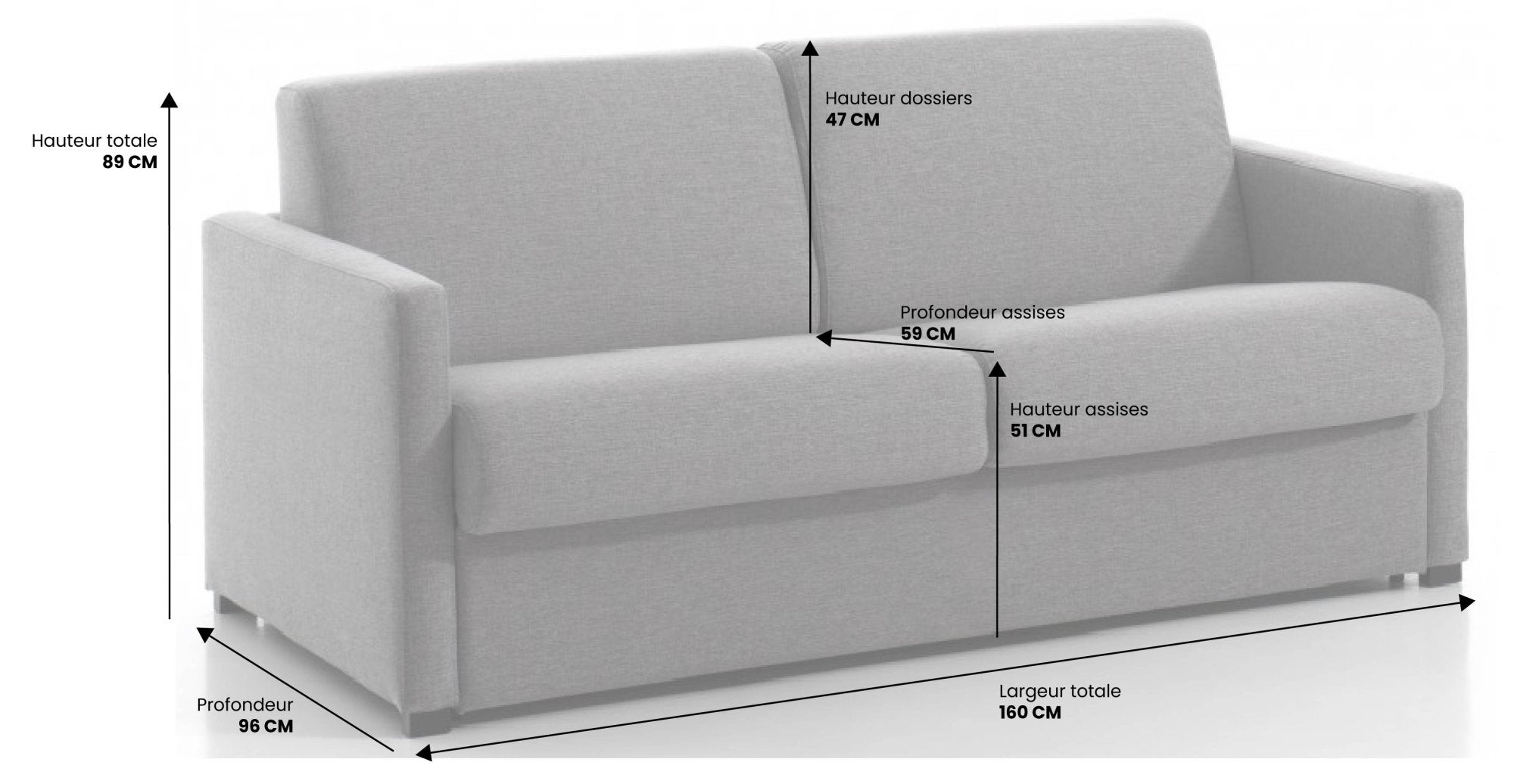 Son mécanisme d'ouverture RAPIDO a été conçu pour vous faciliter la vie et durer dans le temps. En quelques secondes, votre canapé que personne ne soupçonne d'être un convertible se transforme en un vrai lit de 140cm.