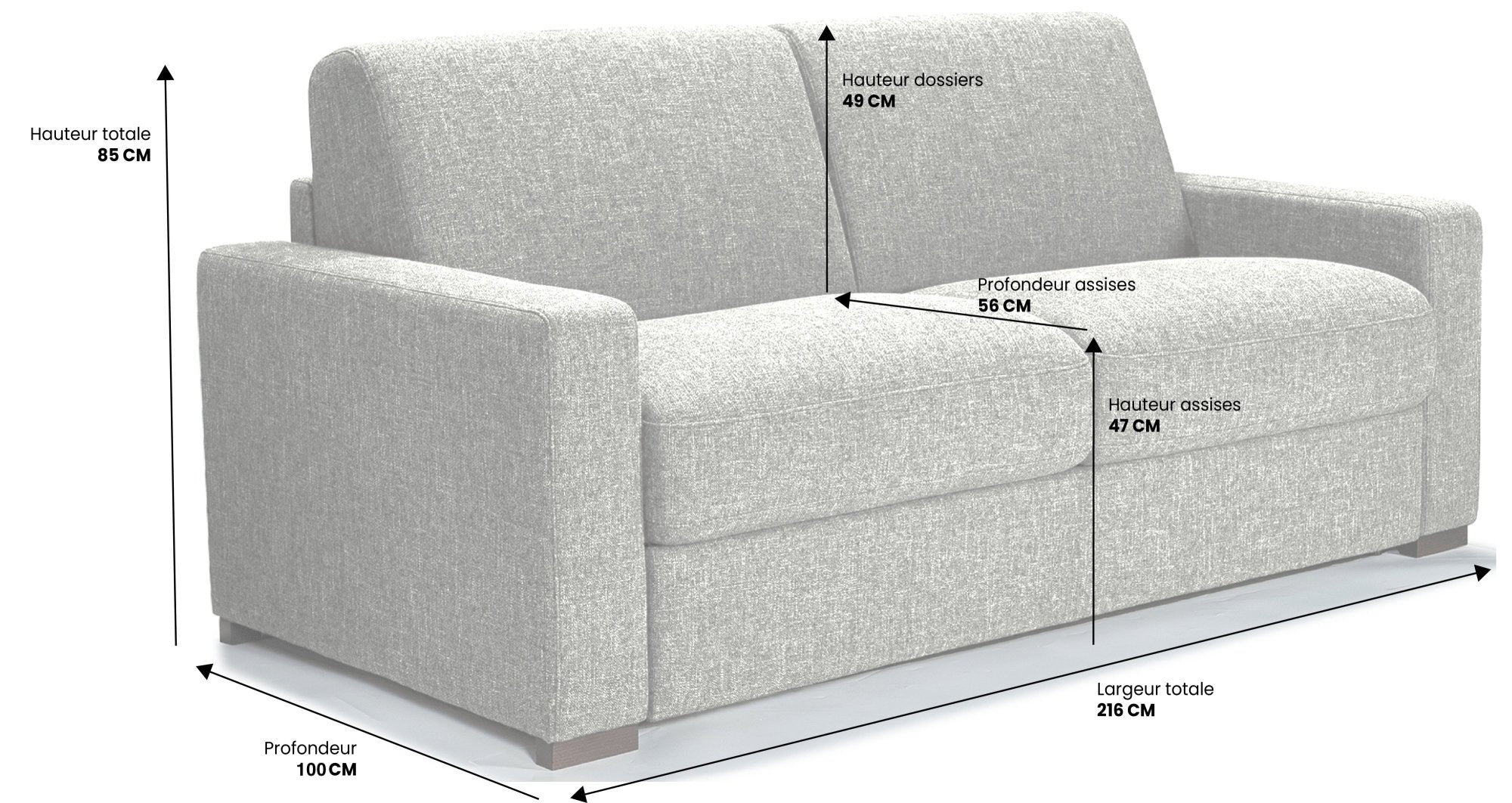 Vous y passerez de longues et douces nuits, comme dans un vrai lit, grâce à son mécanisme d'ouverture EXPRESS équipé d'un sommier à Double lattes larges et d'un matelas de 16cm pour un couchage très confortable. Il se transformera en un canapé-lit d'un seul geste et en toute simplicité.