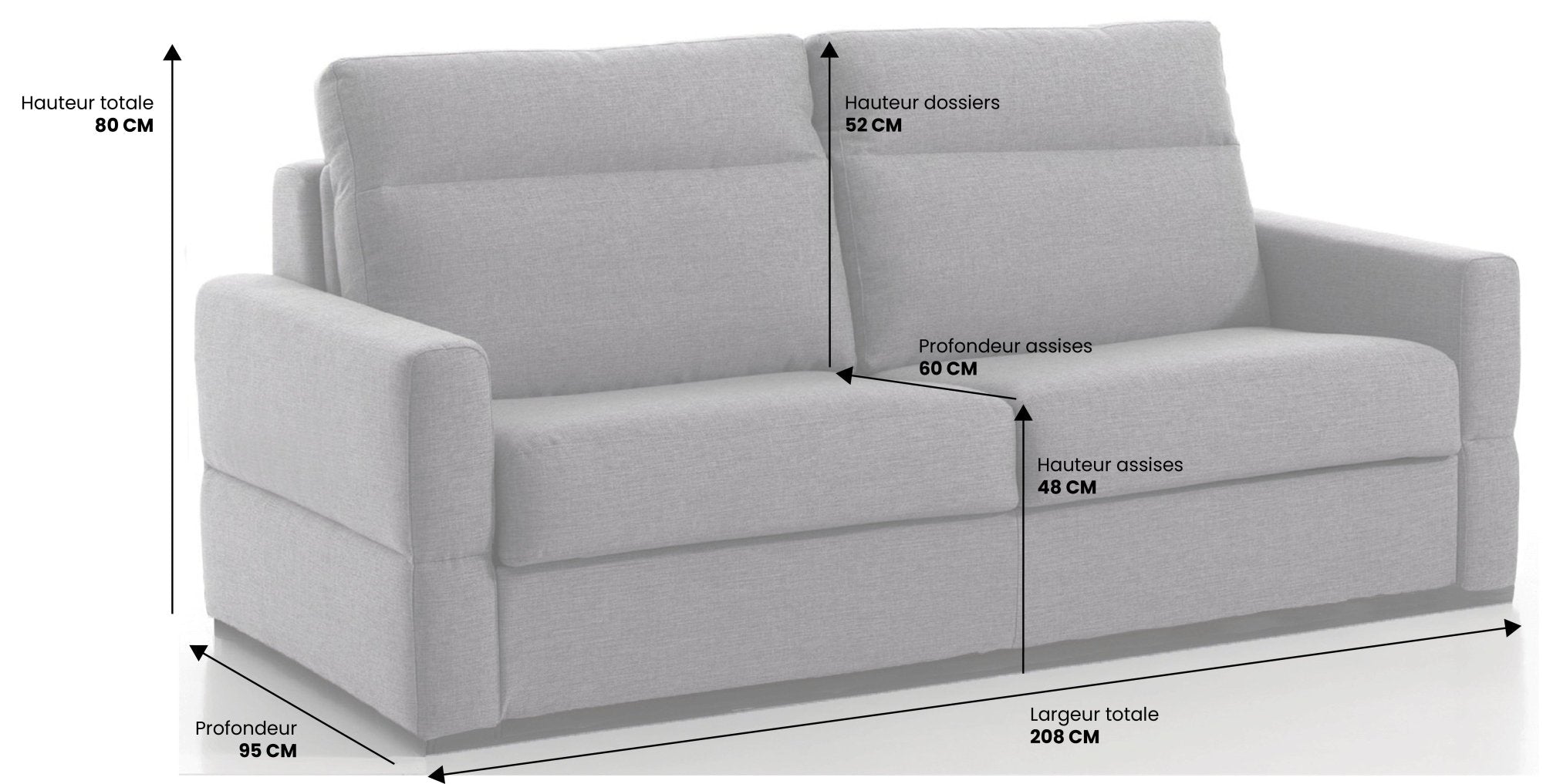 Longueur 208 cm - Couchage 140 x 190 cm - Sommier Double lattes