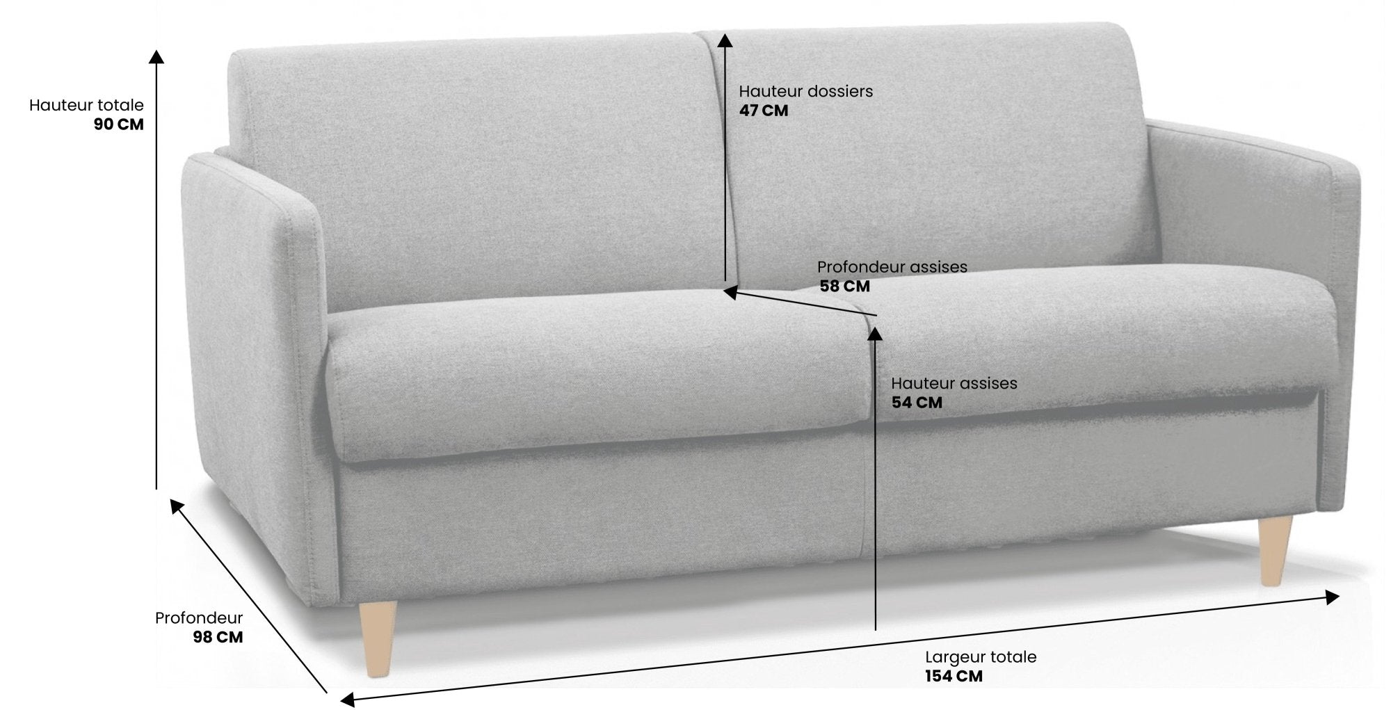 Pour le transformer en un lit confortable, vous n'aurez pas besoin de retirer ses coussins. Son mécanisme d'ouverture EXPRESS a été conçu pour vous faciliter la vie et durer dans le temps. En quelques secondes, votre canapé que personne ne soupçonne d'être un convertible se transforme en un vrai lit de 120cm.