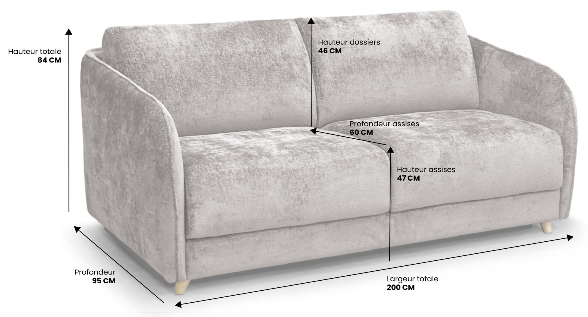 MERIBEL - Canapé convertible scandinave 4 places - Velours déperlant