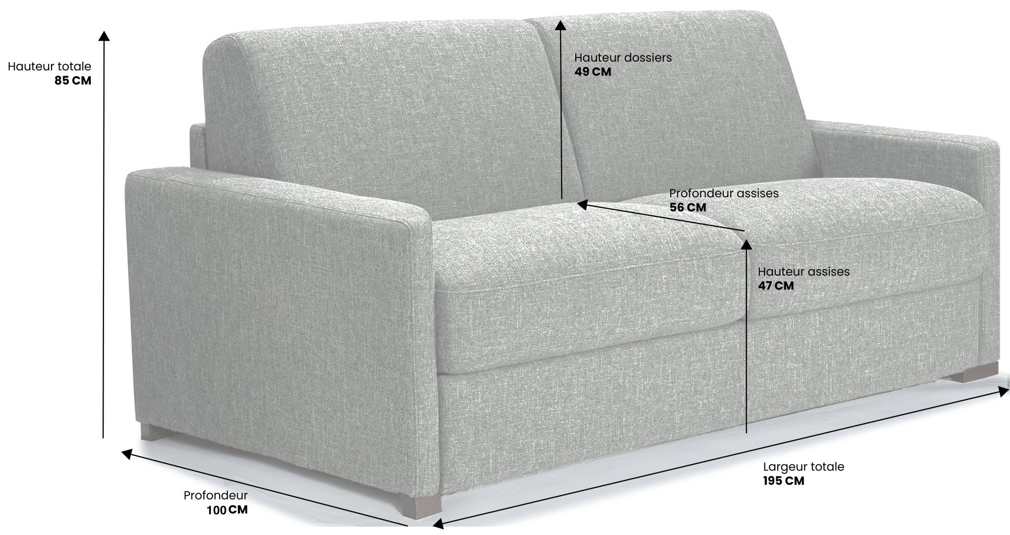 Vous y passerez de longues et douces nuits, comme dans un vrai lit, grâce à son mécanisme d'ouverture EXPRESS équipé d'un sommier à Double lattes larges et d'un matelas de 16cm pour un couchage très confortable. Il se transformera en un canapé-lit d'un seul geste et en toute simplicité.