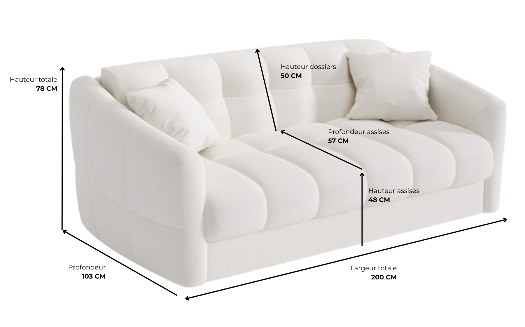 Les accoudoirs épais et arrondis offrent un soutien confortable aussi bien en mode canapé qu'en mode lit, tandis que les assises généreuses et les dossiers accueillants assurent un confort optimal pendant vos moments de détente.