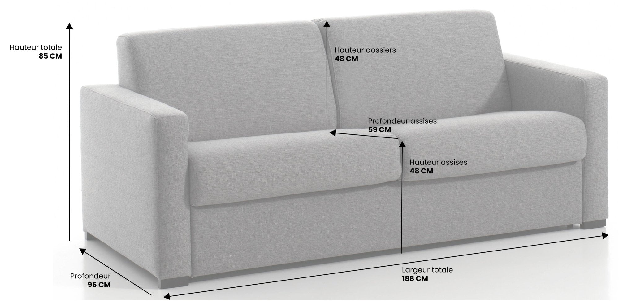 Longueur 188 cm - Couchage 140 x 190 cm - Sommier Double lattes