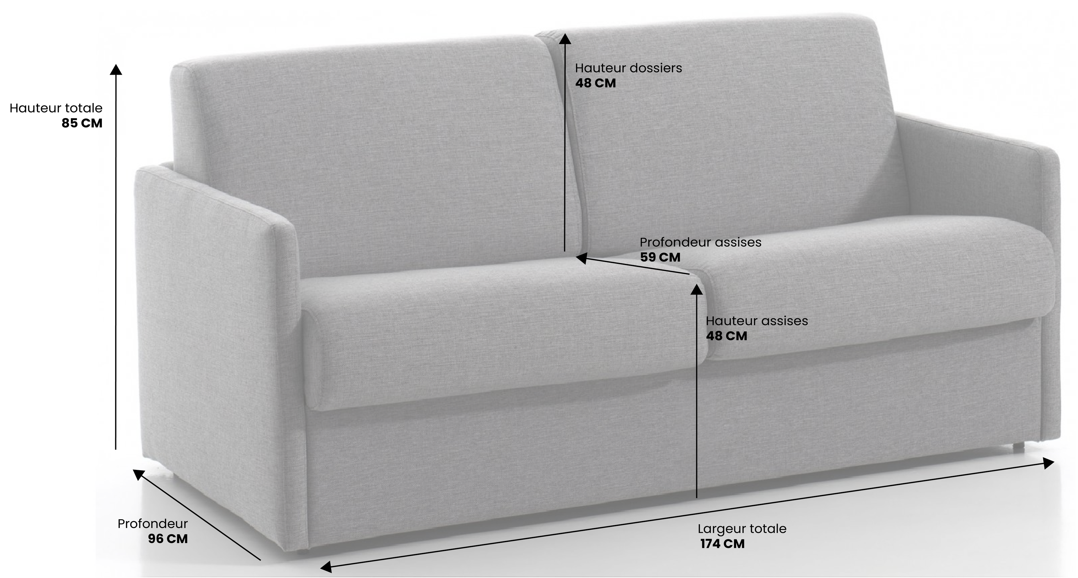 Conçu pour durer, il accueillera votre famille et vos convives avec tout le confort d'un canapé de qualité et d'un vrai lit. Réinventez votre espace grâce au canapé convertible 140cm LOGNES, un véritable couchage dans l'air du temps ! Proposé à un petit prix, mais sans concession sur la qualité, ce canapé convertible aux accoudoirs réduits s'intègrera parfaitement à votre univers au meilleur rapport qualité/prix.