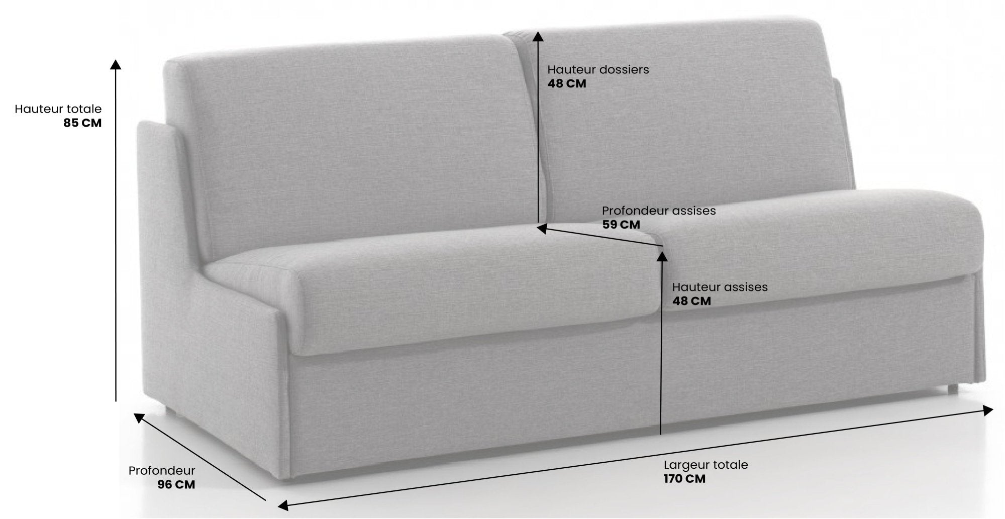 C'est un lit convertible idéal pour les petits espaces, studios & chambres ! Avec son couchage de 140cm, la largeur de ce canapé n'est que de 170cm !