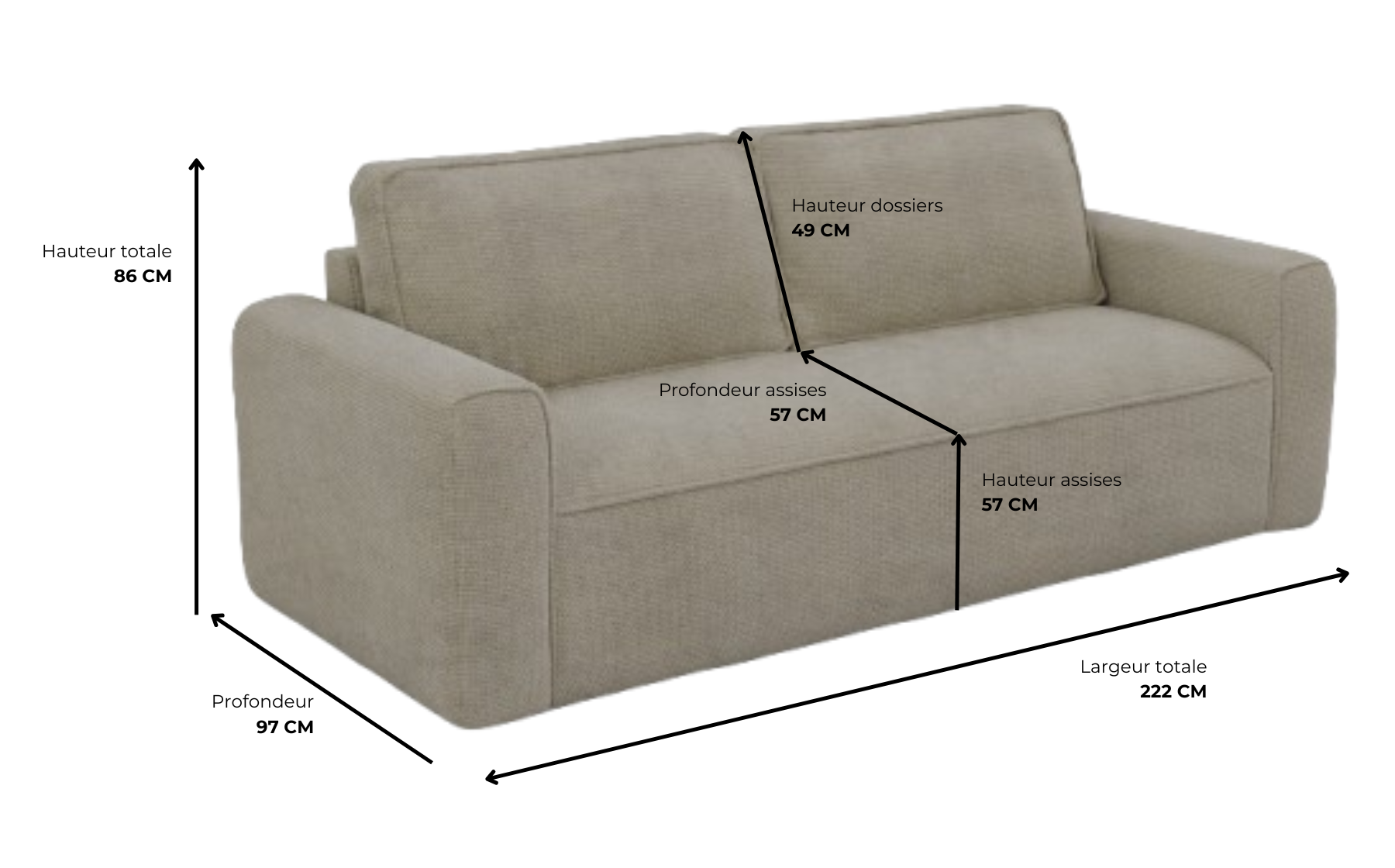 Les accoudoirs épais et arrondis offrent un soutien confortable aussi bien en mode canapé qu'en mode lit, tandis que les assises généreuses et les dossiers accueillants assurent un confort optimal pendant vos moments de détente.