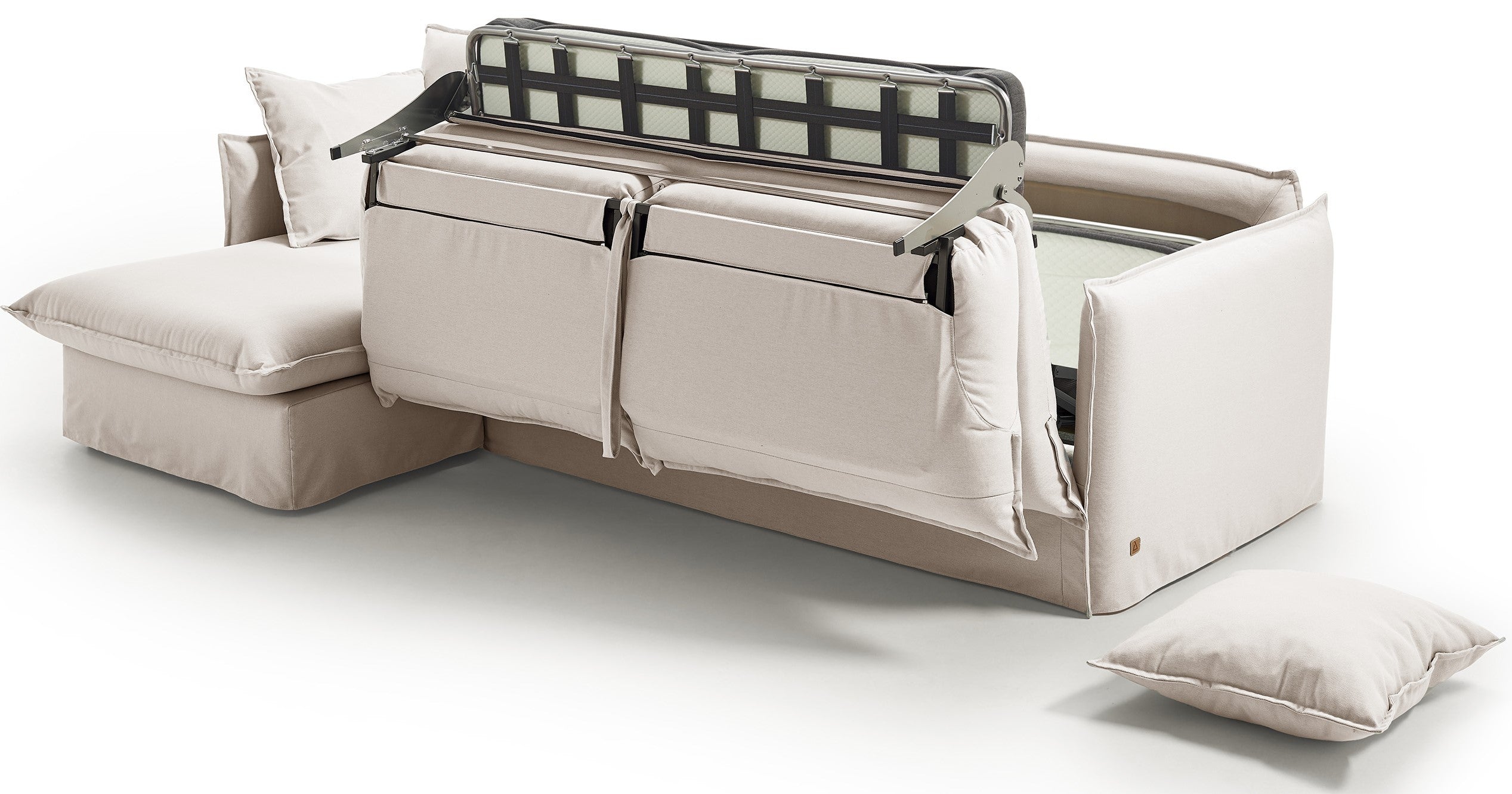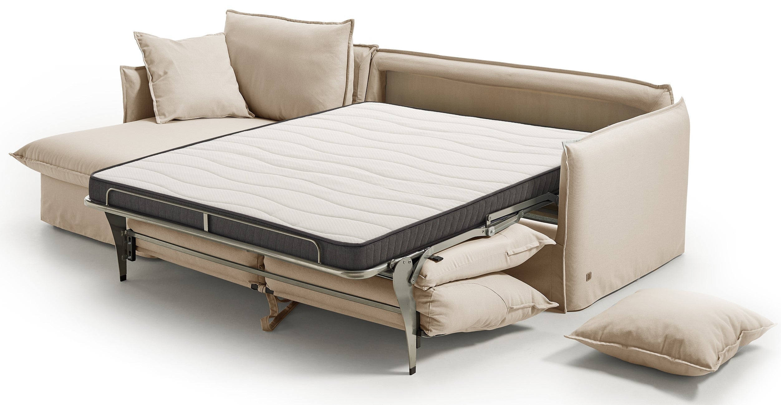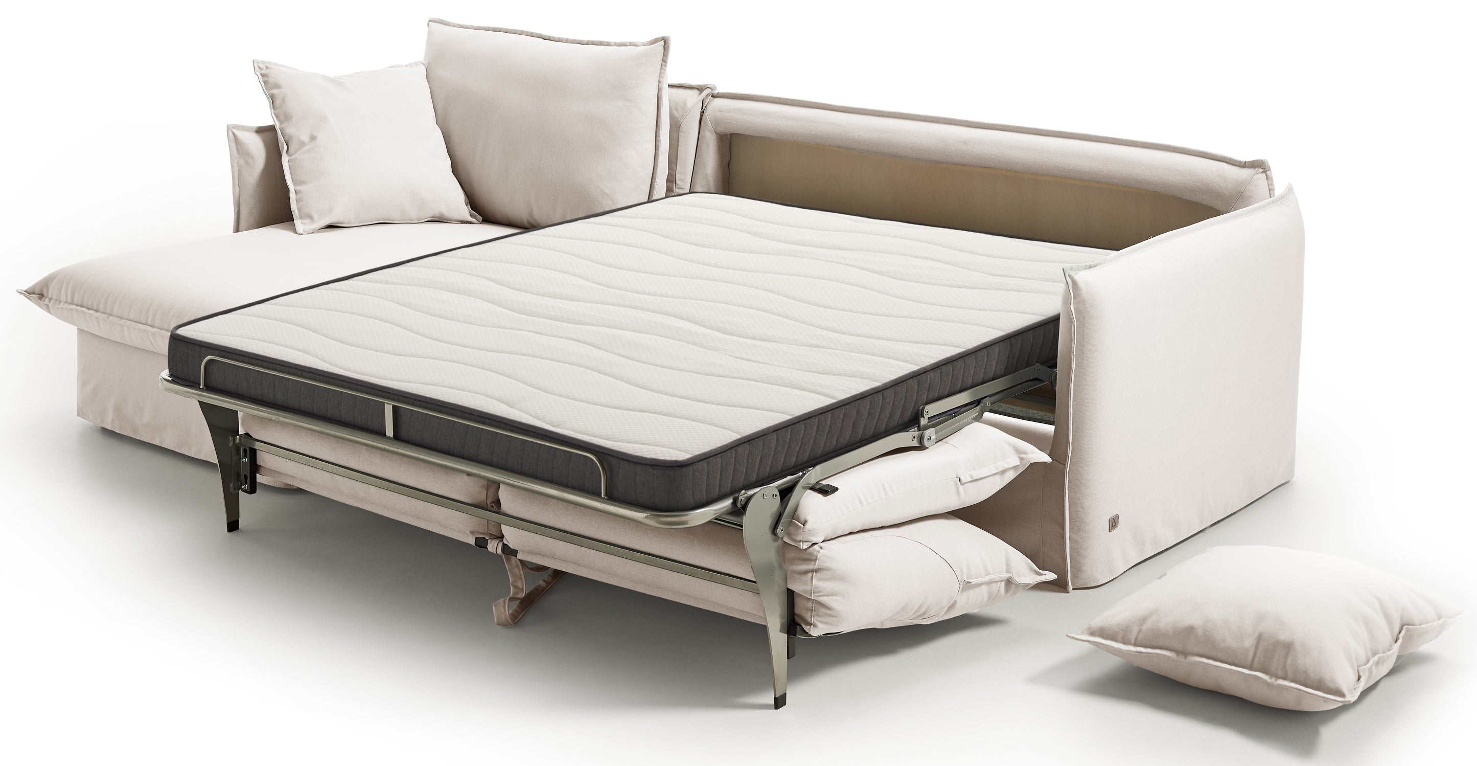 Un canapé d'angle qui devient un véritable lit grâce à son système EXPRESS. Ce canapé d'angle se transforme facilement en lit grâce à son mécanisme nouvelle génération EXPRESS, sans avoir besoin de retirer les coussins. Il est équipé d’un matelas régulier d'une densité de 20kg/m3 et d'une épaisseur de 12 cm, soutenu par un sommier métallique thermo-soudé de qualité.