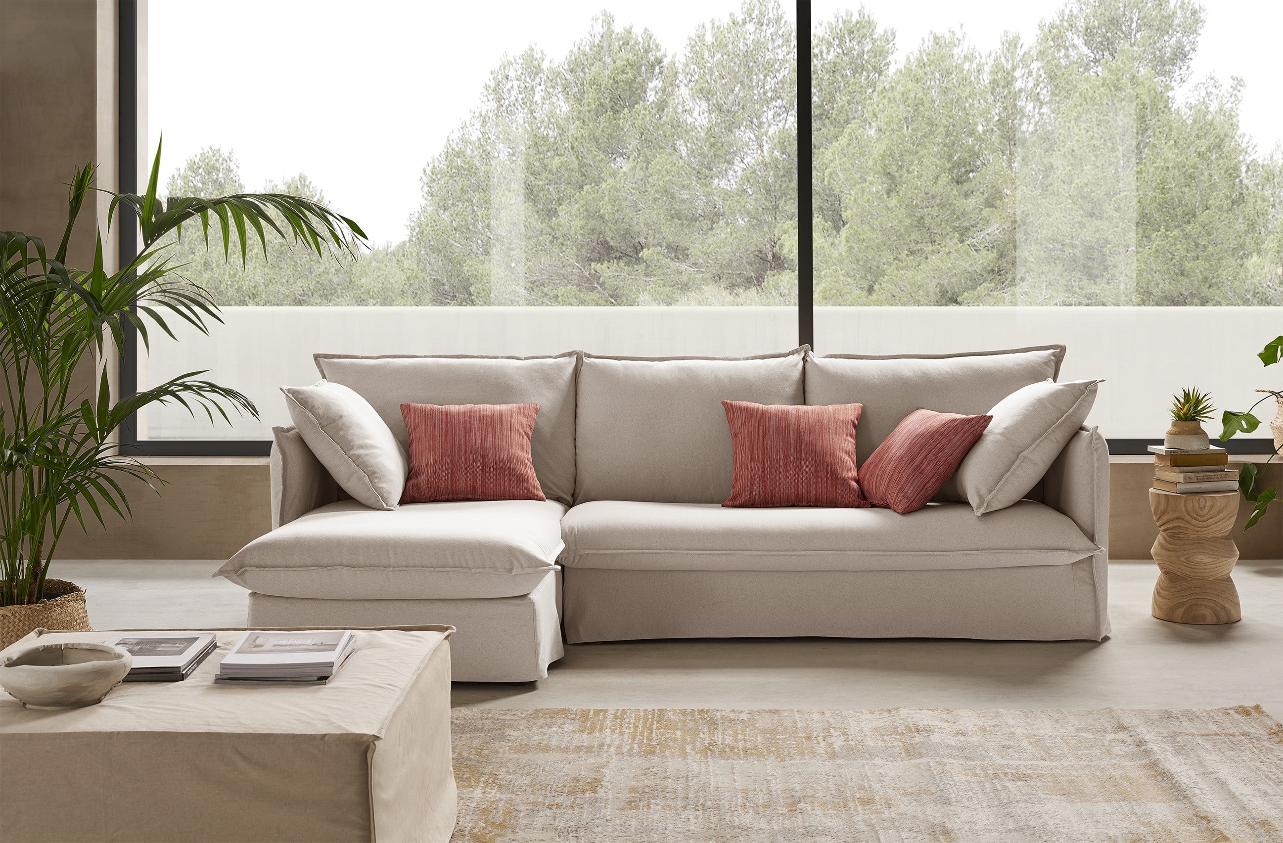 Le canapé d'angle convertible SALLANCHES est un modèle qui évoque sans conteste l'été, grâce à son tissu en toile douce et agréable au toucher. Avec ses dossiers hauts et moelleux, ce canapé d'angle s'intégrera parfaitement dans votre salon, offrant à la fois confort et style. Sa teinte naturelle lui confère un aspect chic et haut de gamme, idéal pour sublimer votre intérieur.